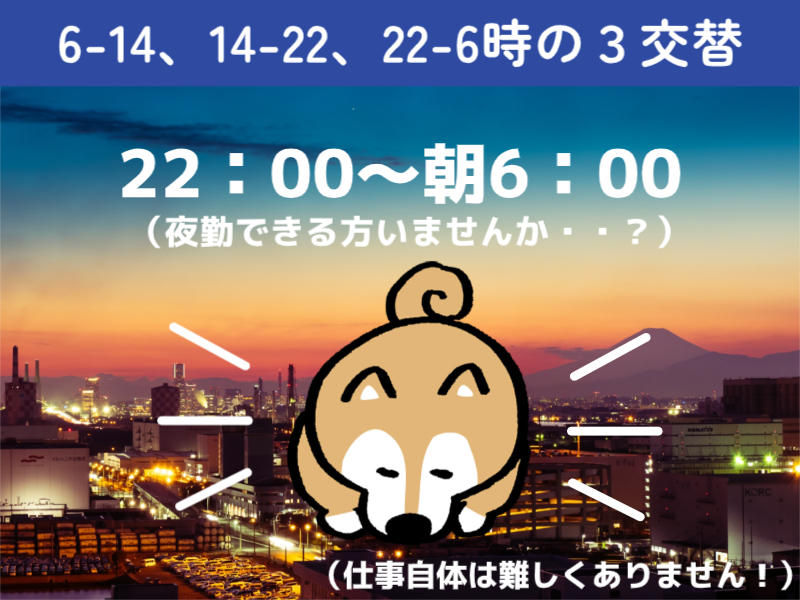 - 時給1,350円+交通費 ※22:00~5:00は割増時給