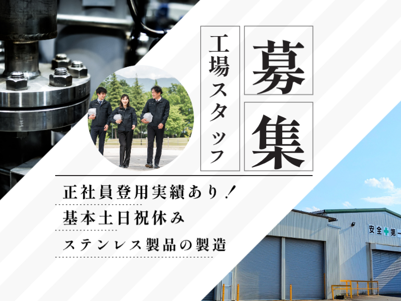 未経験の方も活躍できる工場内作業です!自社で設計した受注生産のステンレス製品(機械部品や表札など様々)を製造している会社です。